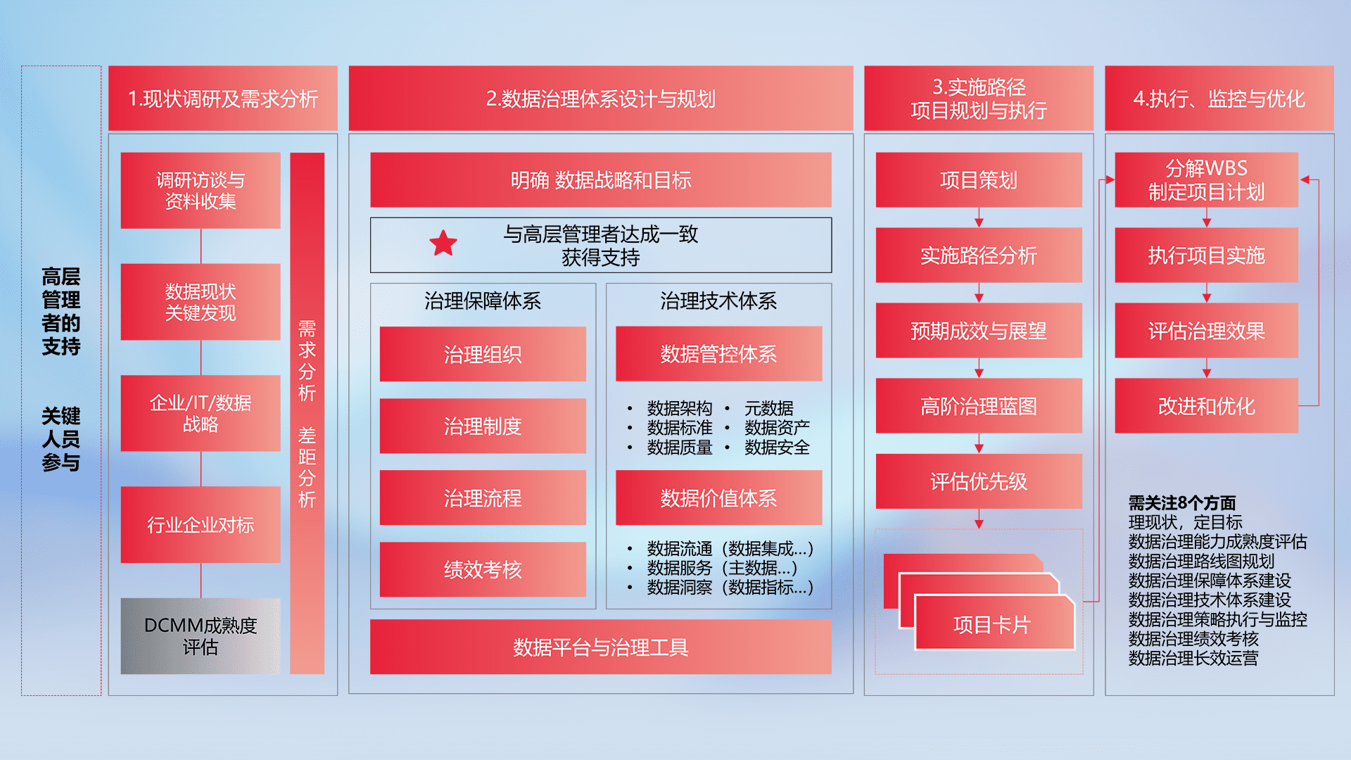制定并执行统一的数据标准,,,,规范数据定义和格式,,消除冗余和不一致性,,,实现跨部门和跨系统的数据一致性,,,为企业提供标准化的数据基础。。。。